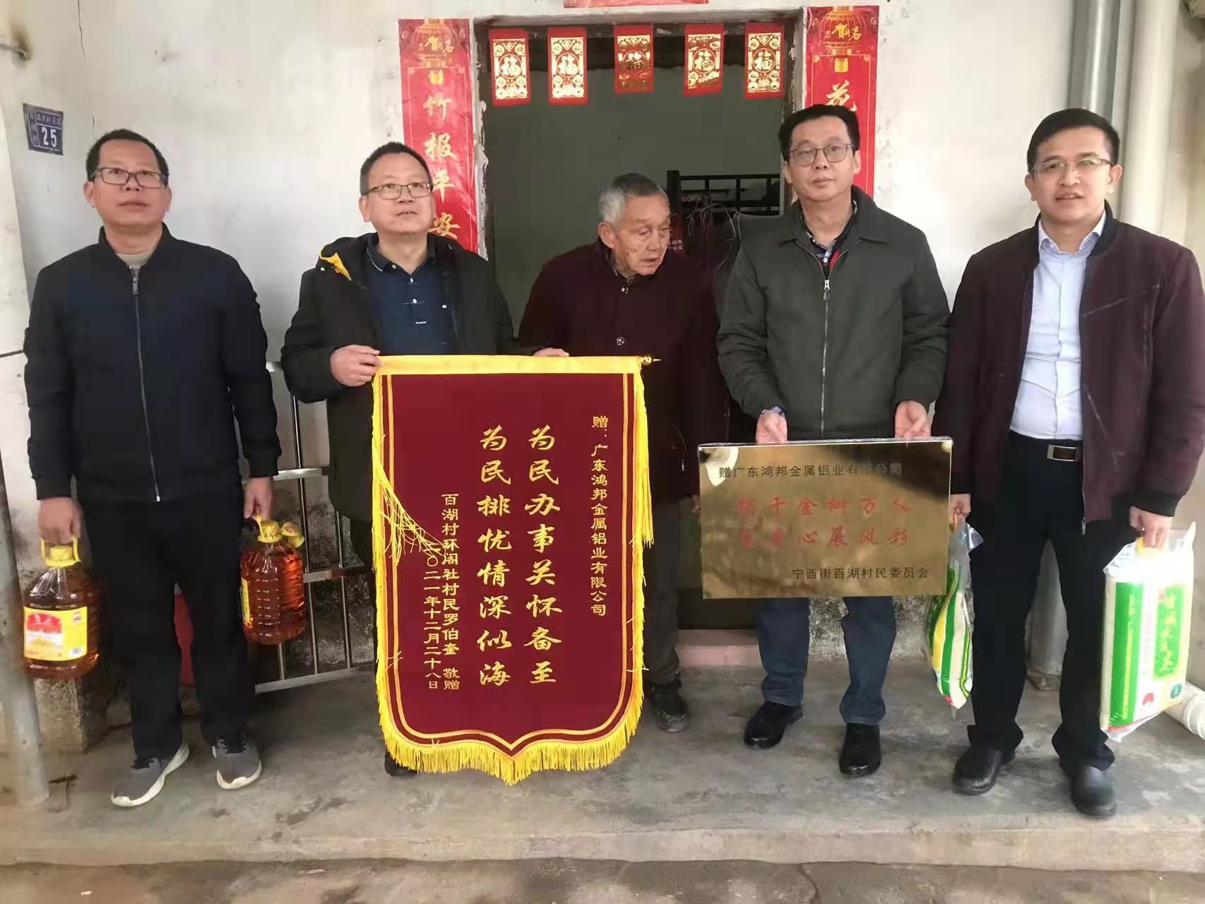 得益于周邊村以及社會各界的支持,廣東鴻邦金屬鋁業有限公司自成立以來一直穩步發展。為進一步推動村企共建、和諧共處,2022年2月23日下午,在增城區百湖村委員會羅文福書記及環閣社羅振雄社長的陪同下,鴻邦公司財務總監、工會主席何景南一行走訪慰問貧困低保戶羅伯奎,并為他送去了大米、食用油及搭建遮雨棚等生活物資。在走訪過程中,慰問小組和羅伯奎親切交談,細致了解他的家庭收入、健康情況等,認真聽取他家目前存在的困難和問題,鼓勵他要積極樂觀,樹立信心,勇敢的面對生活的…
